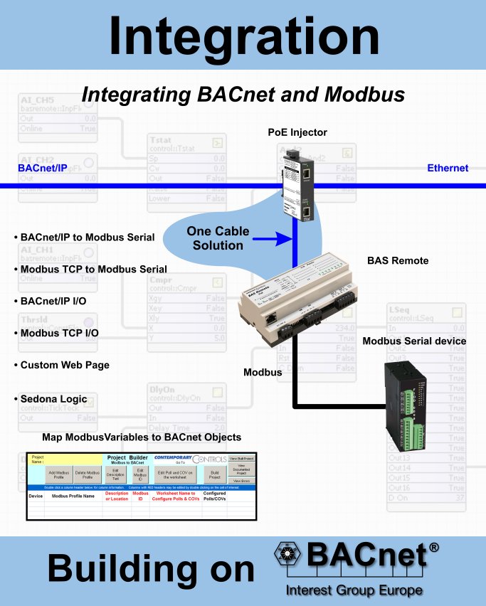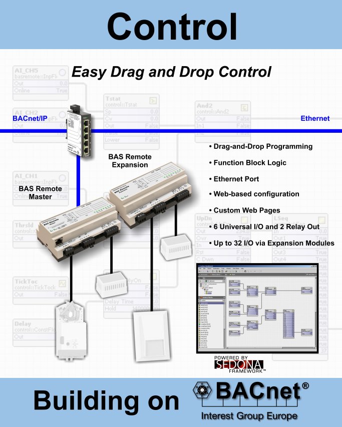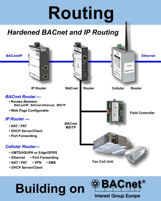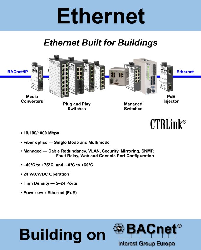 For Ethernet, we'll be showing our CTRLink series of Ethernet Built for Buildings infrastructure products which includes managed and unmanaged switches, media converters and PoE injectors. For Routing, there will be IP, cellular and BACnet routers. Integration will feature our "One Cable Solution" where our BAS Remote maps Modbus variables to BACnet over a single Ethernet cable. For Control, we will be showing our implementation of Sedona Framework on the BAS Remote, providing easy drag-and-drop programming.