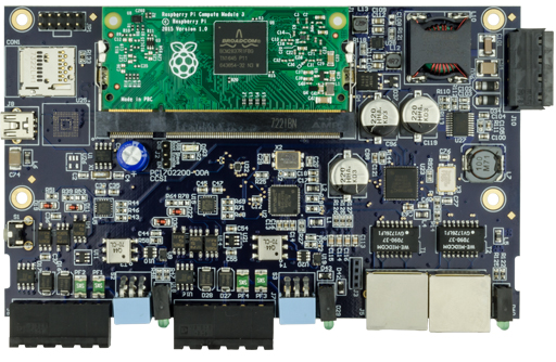 Two styles of automation platforms exist with installed boards in a metal DIN rail mounted enclosure. The Pi Automation Platform incorporates the Raspberry Pi compute module while the TI Automation Platform incorporates a TI Sitara processor module. Both feature dual serial ports and dual Ethernet ports and will execute code developed for the Raspberry Pi or BeagleBone Black. A daughterboard socket offers flexibility for other interfaces.