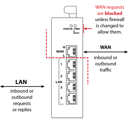 Network address translation (NAT) is a technology that allows changing or translating IP addresses between different subnets. Usually, a WAN-side or public IP is translated to a private network to allow access to all services of a LAN-side device. This provides an added layer of security by hiding internal IP addresses from external networks, making it difficult for potential attackers to target individual devices directly. The WAN-side device can communicate to a LAN device behind the firewall without any special configuration as it uses the WAN-side IP address.