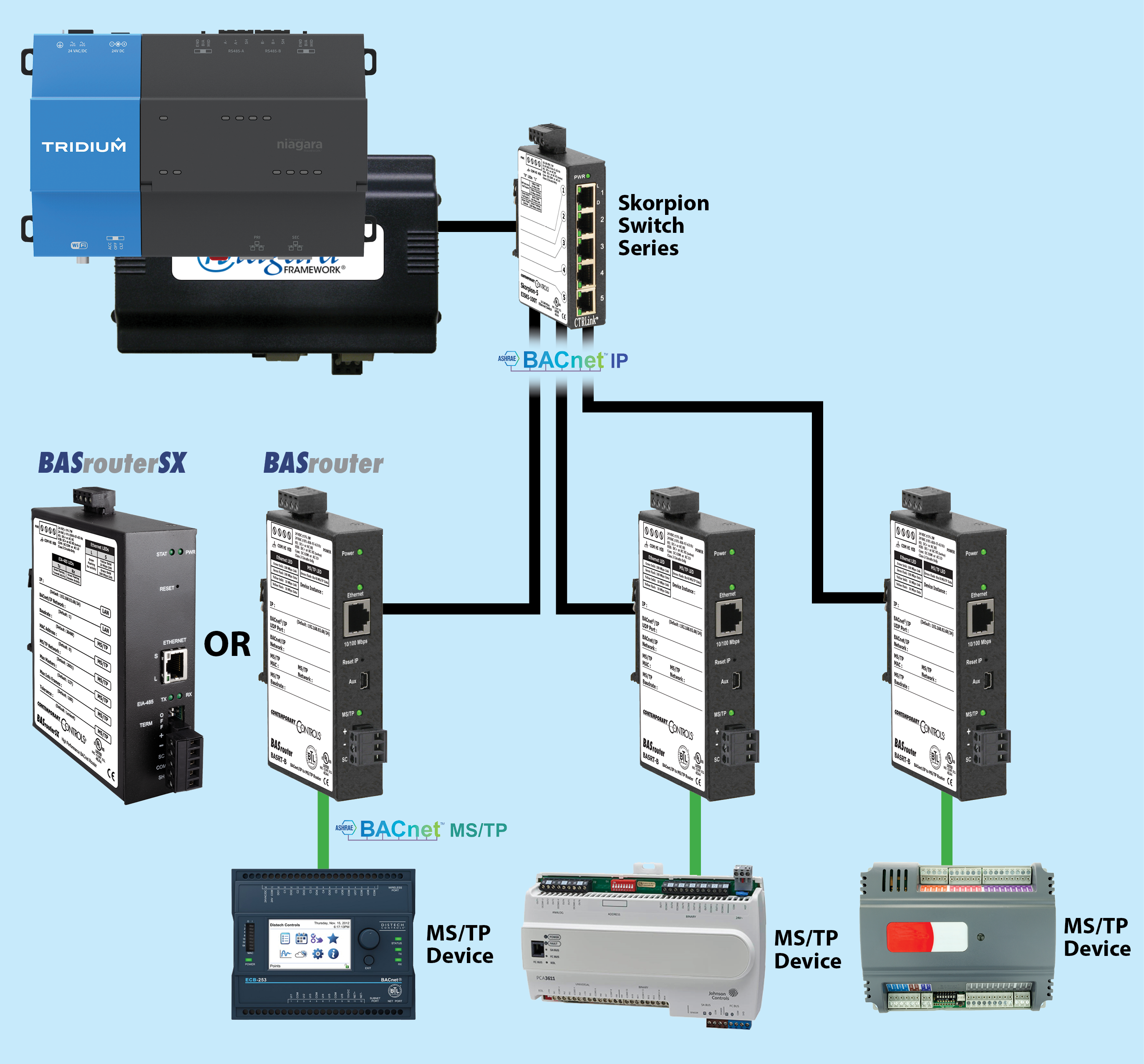 Segmenting BACnet MS/TP networks can also simplify the integration of BACnet MS/TP with BACnet/IP. Contemporary Controls' BASrouter and BASrouterSX multi-network routers allow you to segment your BACnet network and route the traffic to BACnet/IP.